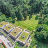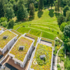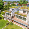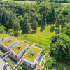 Le coperture sono state realizzate come tetti verdi, ovvero utilizzando un sistema a verde pensile estensivo inclinato con andamento curvilineo, con inclinazione diversa per ciascuna villa.