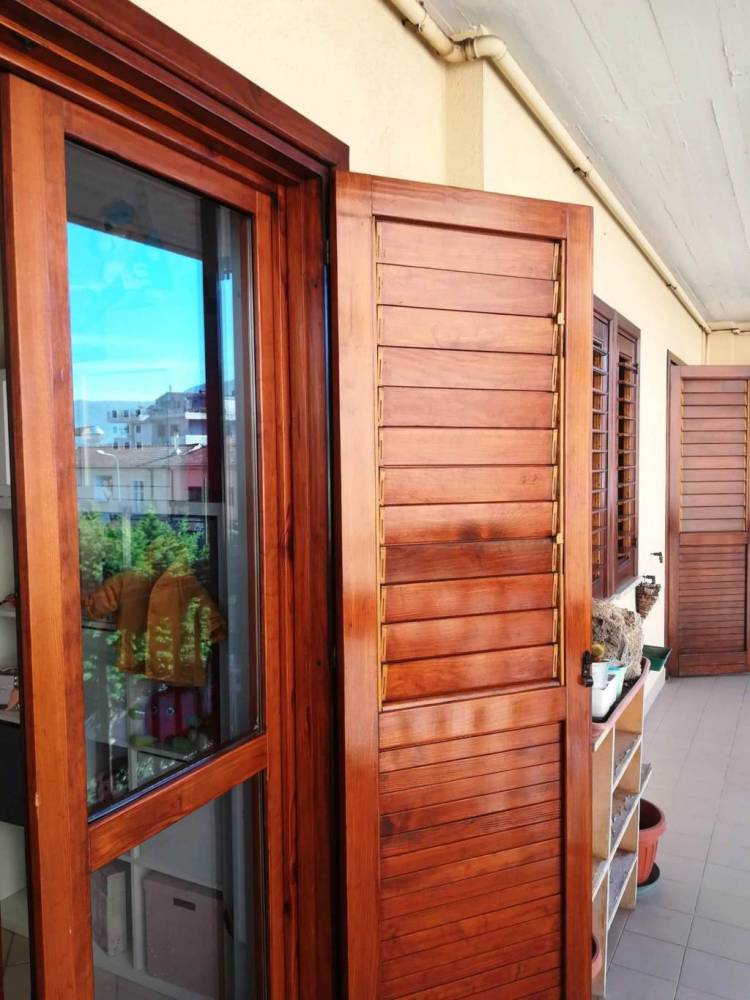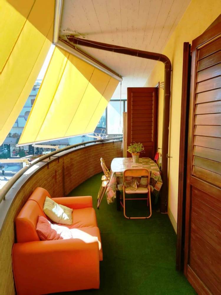 L'appartamento presenta ampie balconate e un bel terrazzino, ideale per rilassarsi nelle giornate estive, con tende da sole già installate per poter godere dello spazio esterno anche nei momenti più caldi.