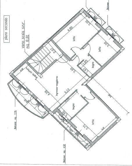 L'appartamento, posto al secondo piano senza ascensore, è composto da ingresso-soggiorno con angolo cottura, tre camere e due bagni.