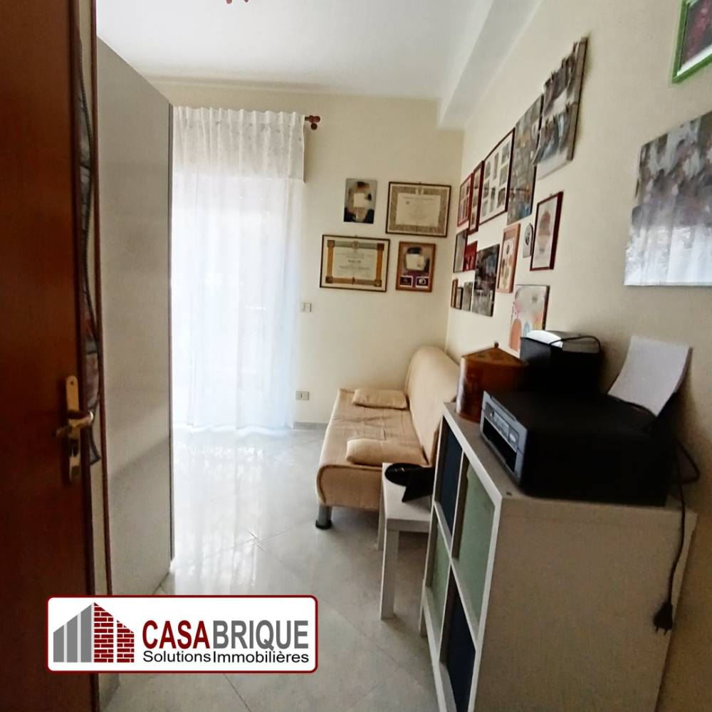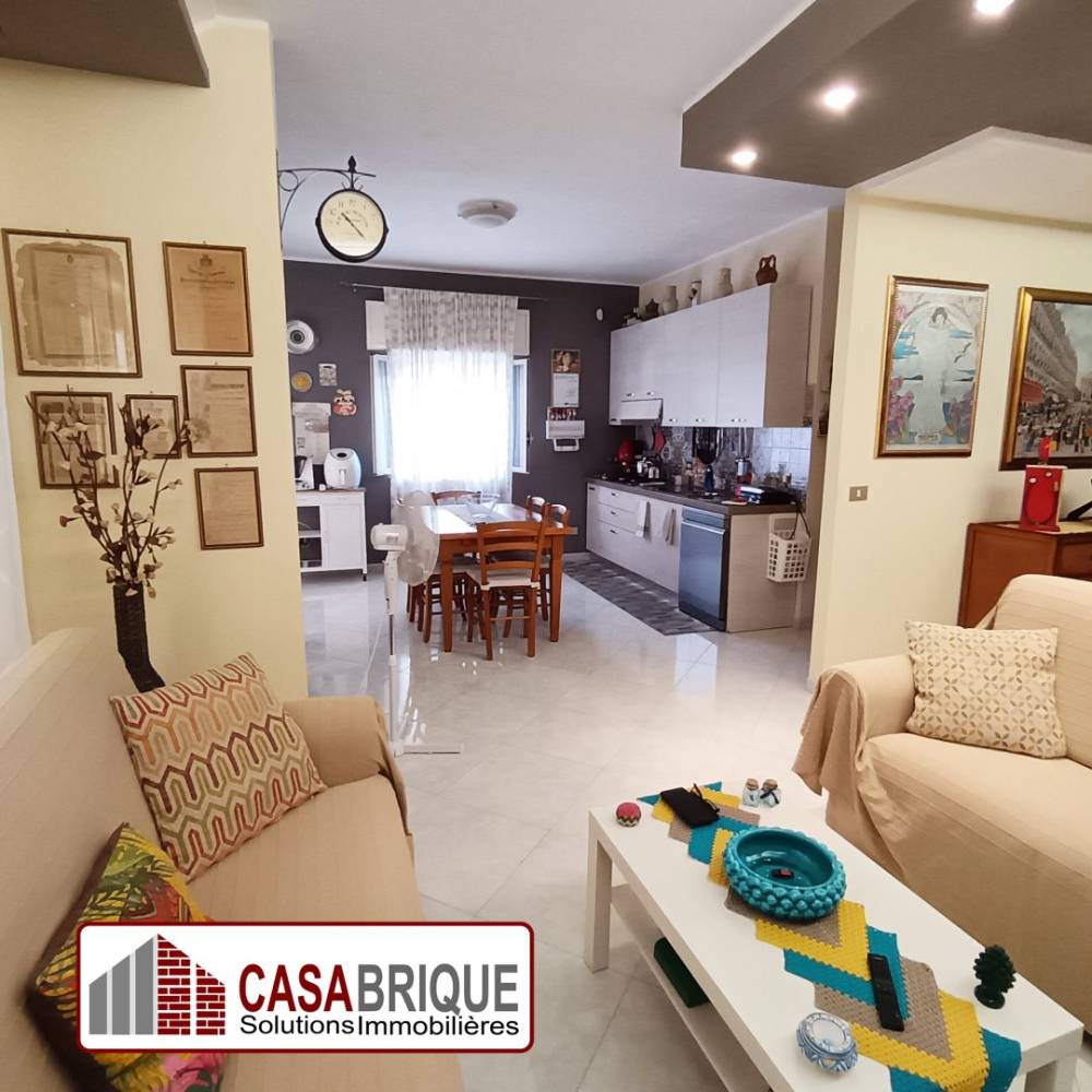 L'immobile, di circa 135 mq, si compone di un ingresso su disimpegno, un ampio salone collegato direttamente alla cucina abitabile, due camerette, una camera matrimoniale, due bagni, uno con vasca e uno con doccia, e un comodo ripostiglio.