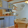 Cucina abitabile attrezzata con finestra e tavolo con sedie.