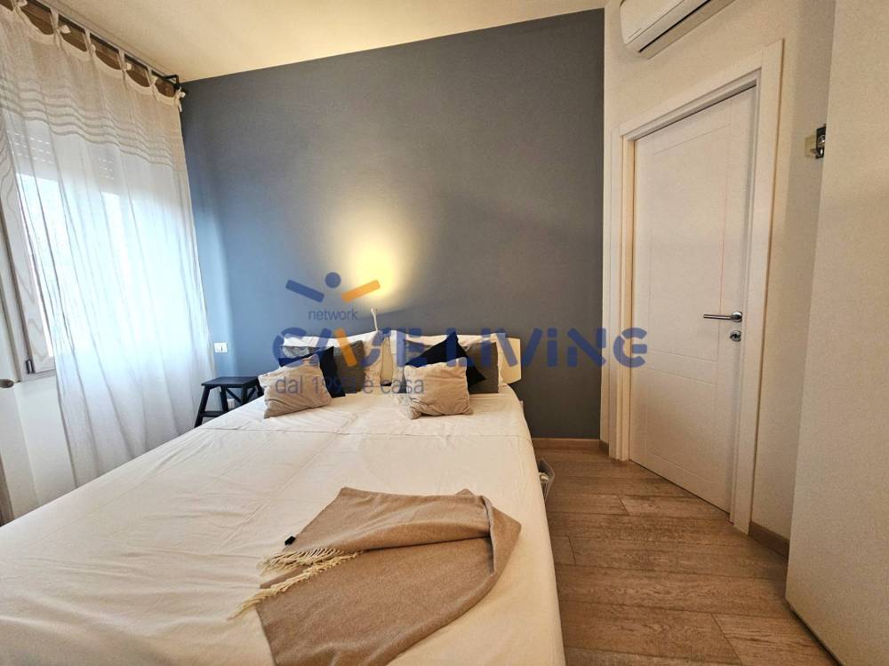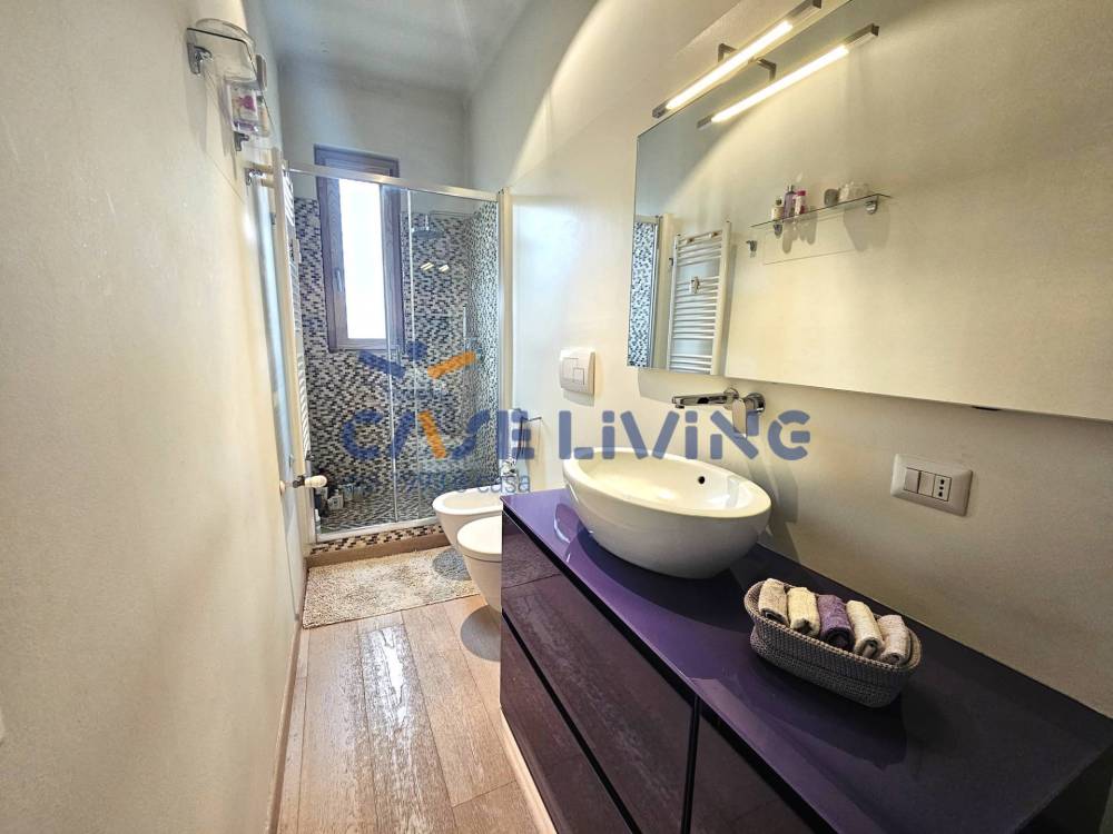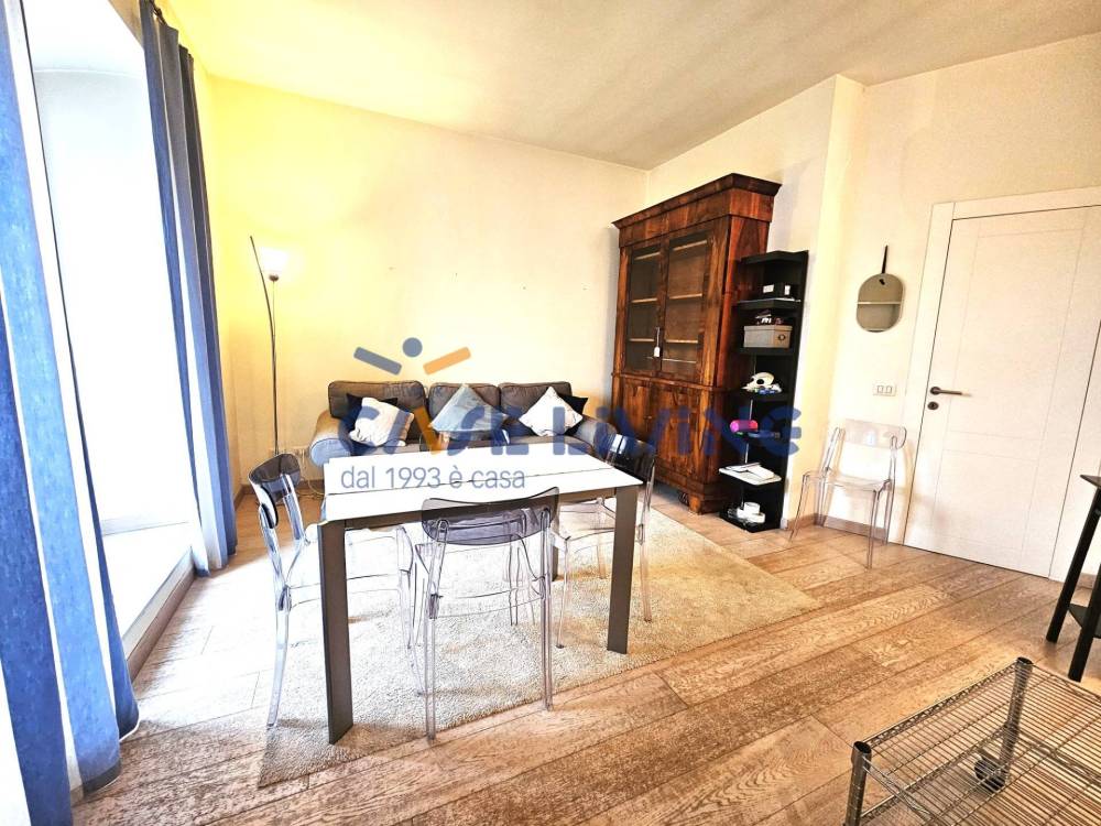 L'appartamento è così distribuito: ingresso, soggiorno che da direttamente sullo spazioso terrazzo, cucinotto separato, camera da letto matrimoniale, bagno con ampia doccia e ripostiglio in cui trova la lavatrice.