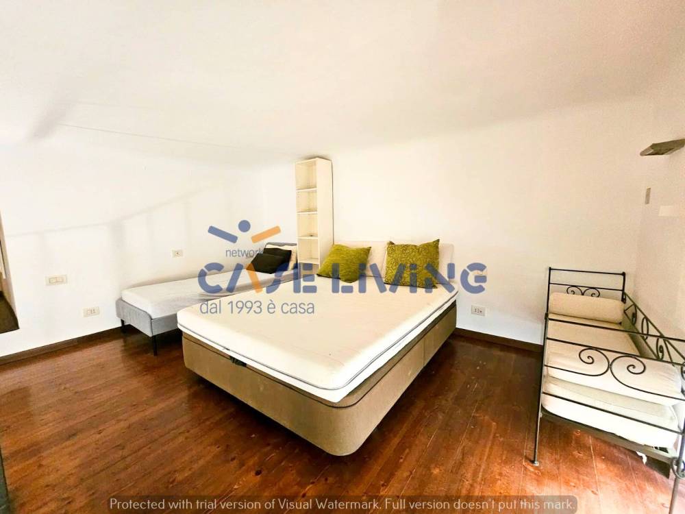 La grande zona living è separata da una porta scorrevole dando la possibilità di creare due ambienti distinti adatti a diversi esigenze oltre al profondo soppalco e cabina armadio che offrono ulteriore spazio adattabile a molteplici utilizzi.