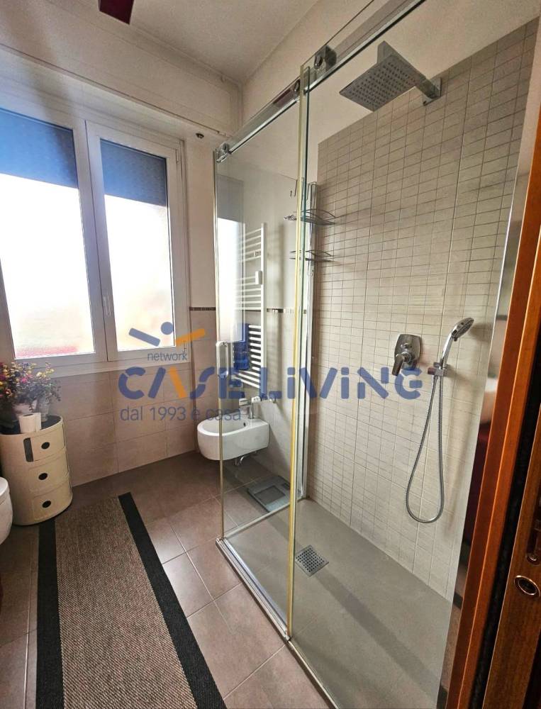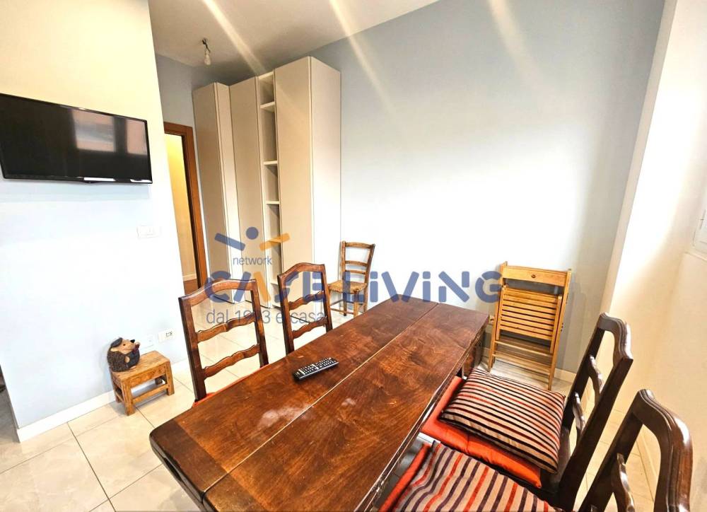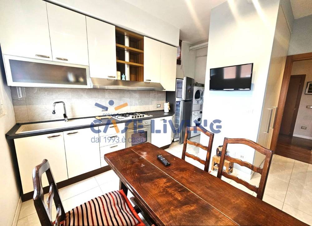 Lappartamento, completamente arredato e corredato, è caratterizzato da una notevole luminosità grazie al piano alto e da una distribuzione degli ambienti particolarmente funzionale. Si compone di ingresso, soggiorno con balcone, ampia cucina abitabile con angolo lavanderia fornita di lavatrice e lavasciuga, camera matrimoniale, bagno finestrato con doccia e ripostiglio.