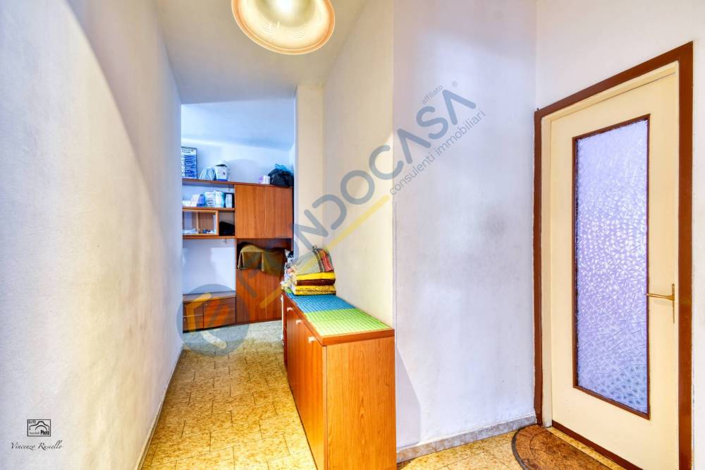 Situato al piano primo SENZA ascensore, si compone come segue: ingresso, ampia cucina abitabile con balcone, corridoio, due ampie camere matrimoniali di cui una con balcone e bagno finestrato con vasca. La pavimentazione è in ceramica in tutta la soluzione, gli infissi sono in legno con vetro singolo, la porta d'ingresso è blindata. Il riscaldamento è autonomo con caldaia a condensazione installata nel 2020. L'immobile ha tripla esposizione a nord-sud-ovest.
