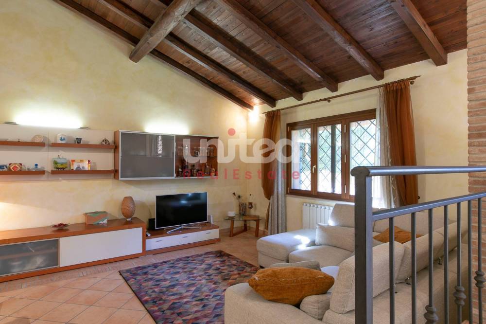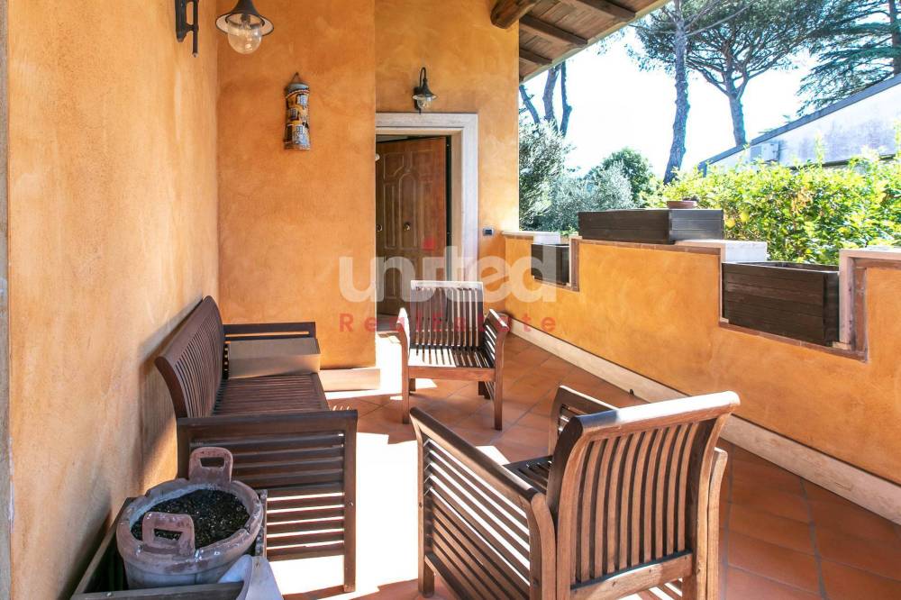 La villa è molto luminosa, in quanto gode di una tripla esposizione, si trova in ottimo stato, con rifiniture in legno stile casale, infissi in pvc con doppi vetri, inferriate, zanzariere, impianto di allarme e di climatizzazione.
