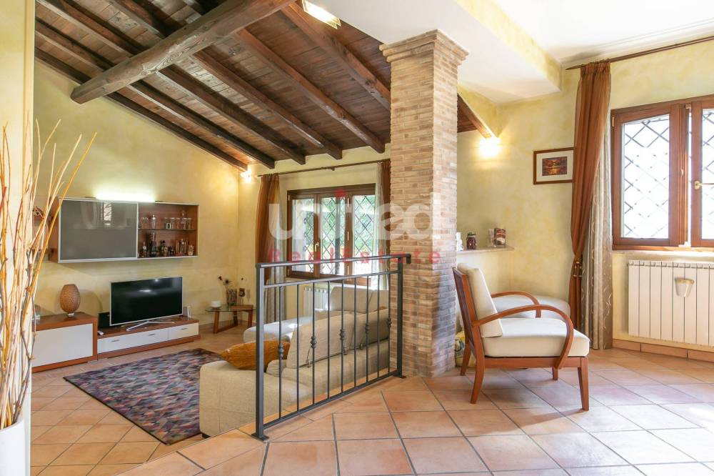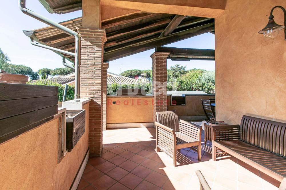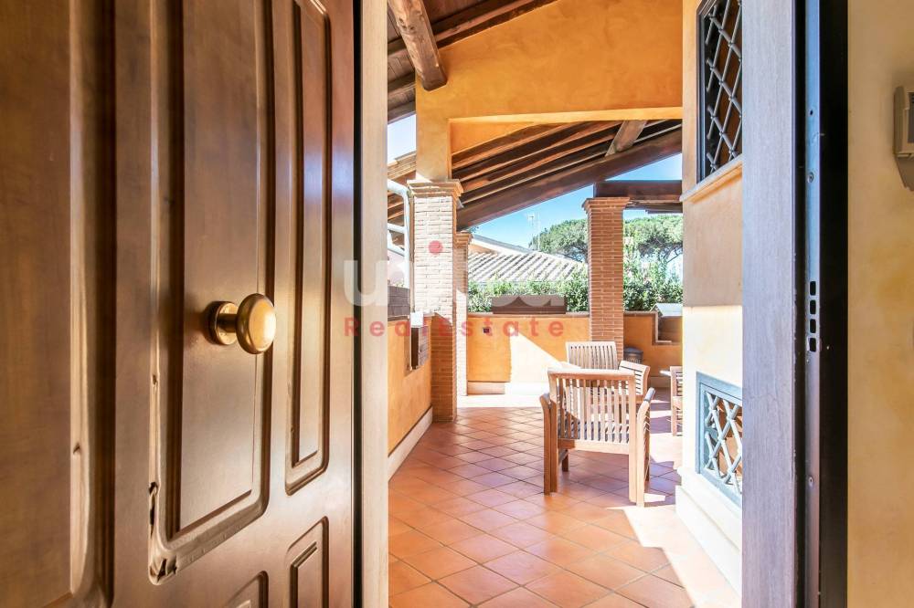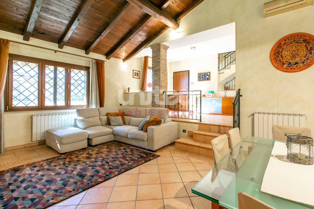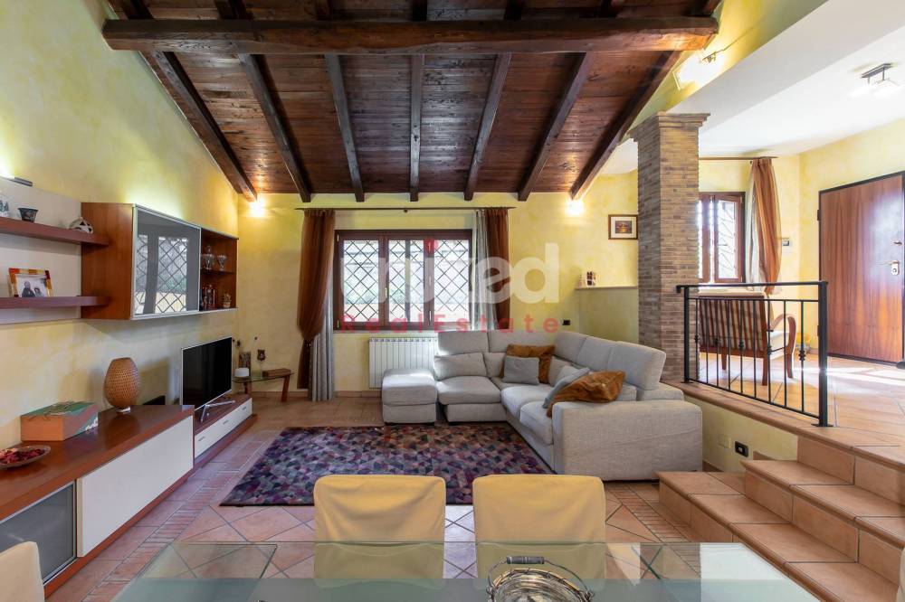 Infernetto, proponiamo in vendita una bellissima porzione di villa quadrifamiliare di circa 200 mq su tre livelli, composta al piano terra da un ampio patio abitabile, ingresso, salone molto grande con camino e soffitti alti con travi in legno, cucina separata ed un bagno. Al primo piano una camera da letto, un bagno ed un sottotetto con ripostiglio, mentre al piano seminterrato totalmente sbancato e con accesso indipendente, troviamo una camera patronale con bagno en suite ed una cabina armadio, altre due ampie camere da letto ed un bagno con doccia.