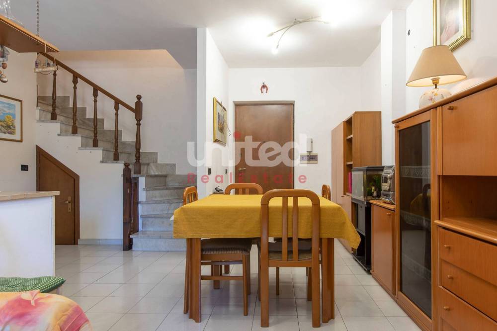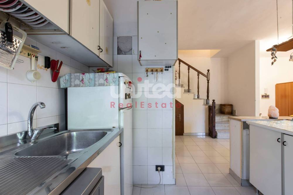 L'immobile, posto al primo e ultimo piano, sviluppa una superficie di 90 mq su due livelli ed è composto da un ampio ingresso che apre sul salone con cucina a vista, un bagno di servizio con lavanderia e un comodo ripostiglio sottoscala.