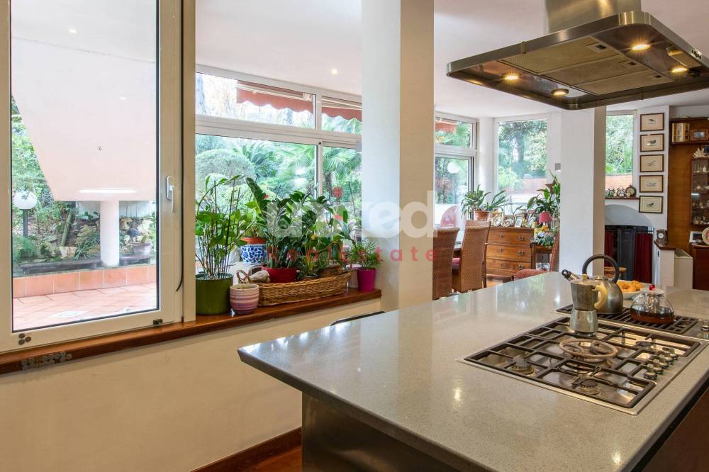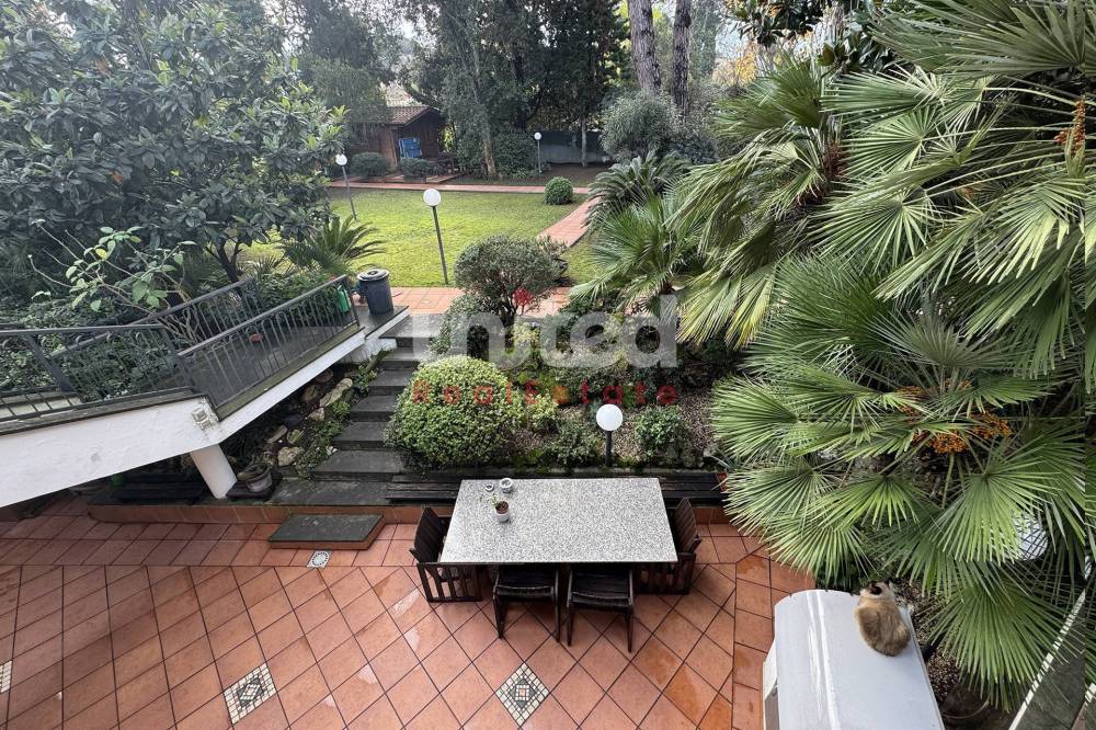 Casalpalocco, precisamente in Viale Gorgia di Leontini, proponiamo la vendita di una prestigiosa porzione di villa quadrifamiliare di circa 300 mq, disposta su 3 livelli e servita da un ascensore privato. Al piano rialzato ci accoglie un salone di rappresentanza con camino, mentre al piano terra troviamo una cucina aperta sul salone, con zona pranzo che affaccia sul meraviglioso giardino di circa 1000 mq con alberi di alto fusto ed una casetta di legno, bagno con vasca, lavanderia, ripostiglio ed un ampia sala hobby. La zona notte si trova al primo piano ed ospita 3 camere da letto, due bagni ed una piccola cabina armadio. Completano la proprietà un piccolo appartamento indipendente con accesso dal giardino ed un box auto di circa 30 mq. La villa è molto luminosa, con esposizione principale a SUD, fa parte di un complesso pentafamiliare e dispone di parco, piscina e campo da tennis condominiali.