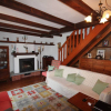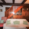 La scala in legno conduce alla zona notte che si trova al piano superiore e che dispone di due camere, di cui una con balcone ed uno spazioso bagno con vasca.