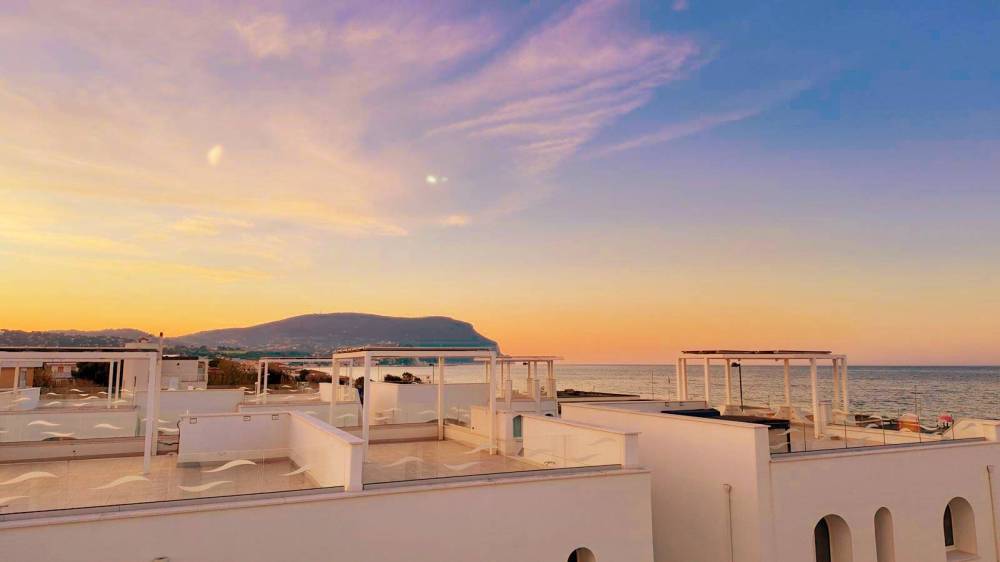 Appartamento prima fila mare per civile abitazione sito al piano primo ( corrispondente all'ultimo piano ), delle dimensioni di 53 m² circa, composto da ingresso su soggiorno con angolo cottura, una camera da letto matrimoniale, un bagno con finestra e piccolo disimpegno al reparto notte. L'appartamento è inoltre fornito una meravigliosa terrazza privata al piano superiore delle dimensioni di 53 mq circa, con vista del mare, allestita con cucina all'aperto e gazebo ombreggiante.