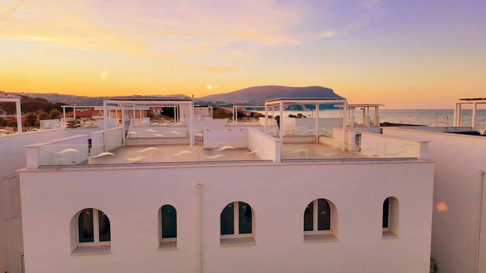 Appartamento per civile abitazione sito al piano primo ( corrispondente all'ultimo piano ), delle dimensioni di 93 m² circa, composto da ingresso su ampio soggiorno con angolo cottura volendo isolabile, due camere da letto matrimoniali, due bagni forniti entrambi di finestra, corridoio nel reparto notte. L'appartamento è inoltre fornito una meravigliosa terrazza privata al piano superiore delle dimensioni di 93 mq circa, con vista del mare, allestita con cucina all'aperto e gazebo ombreggiante.