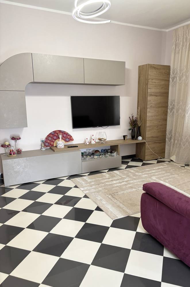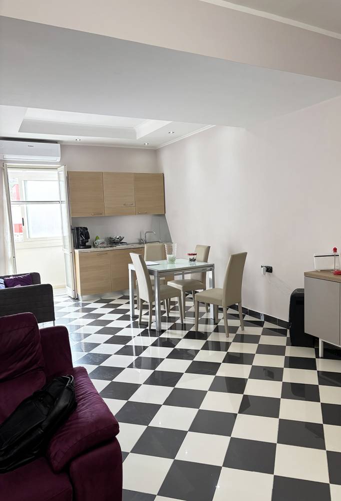 L’immobile è situato al 2° piano (NO Ascensore) di uno stabile di edilizia privata, edificato in cemento armato e quindi antisismico; è composto da ampio soggiorno living con cucina a vista, n° 2 camere da letto, n° 1 servizio in cui sono presenti sia vasca che box doccia.