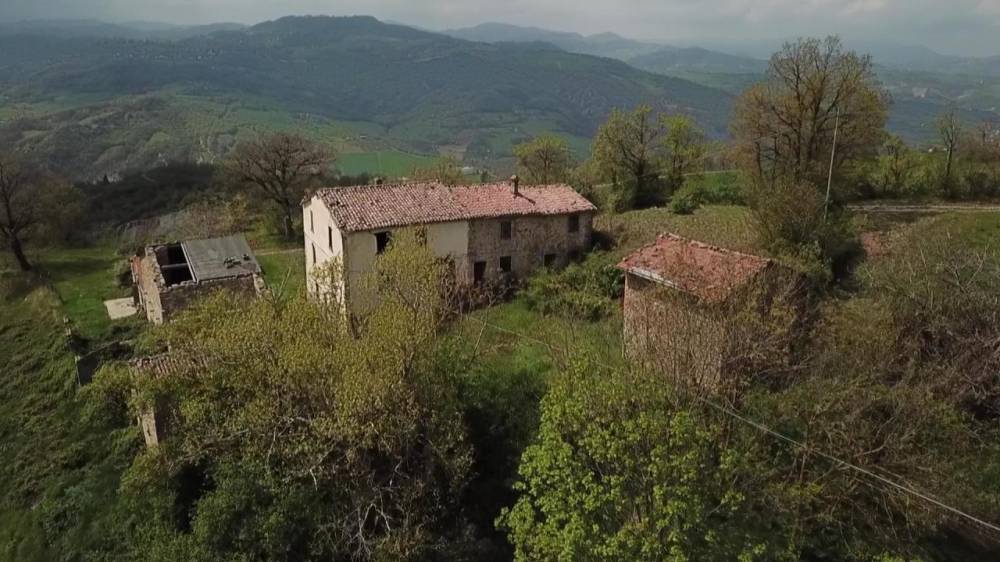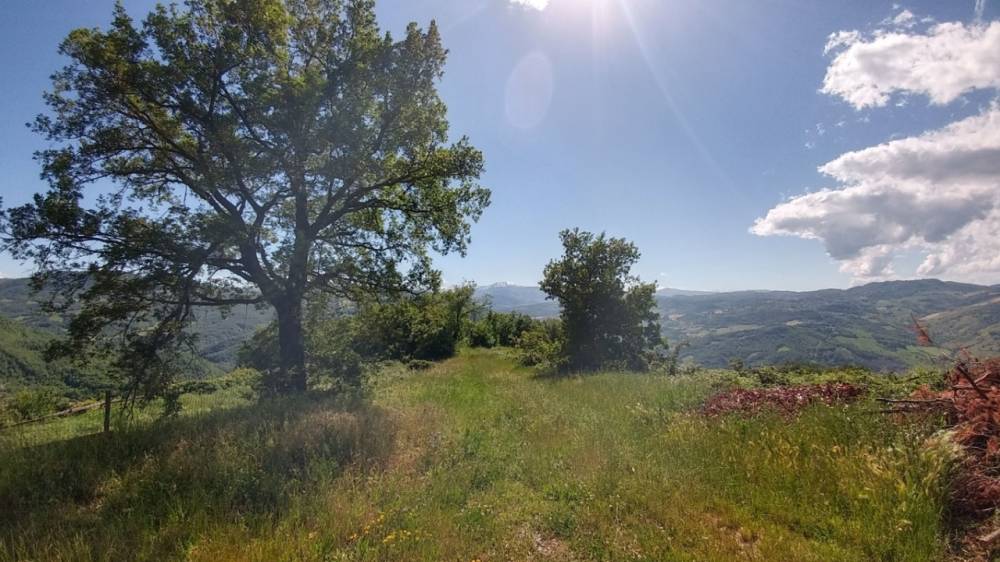 Rosola di Zocca: in posizione dominante sulla valle del Panaro vista Cimone, fondo rustico di circa 6 ettari con fabbricati (due abitazioni, due stalla_fienile) da recuperarsi e collabenti. pozzo di falda.