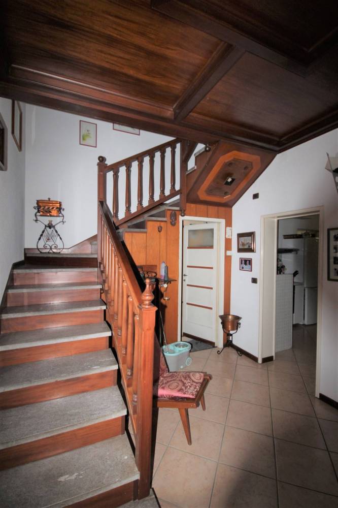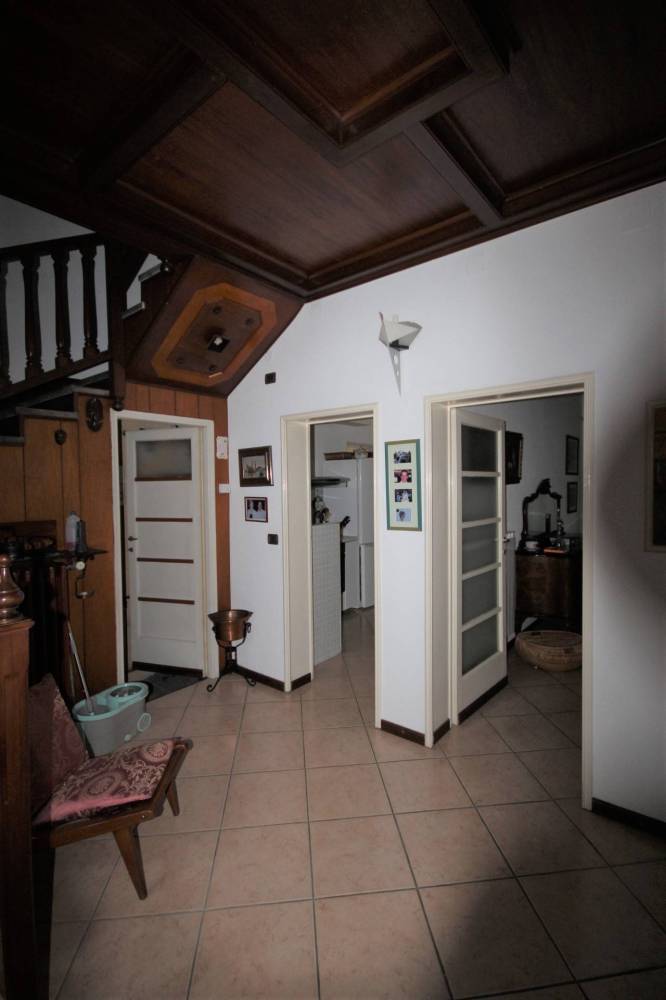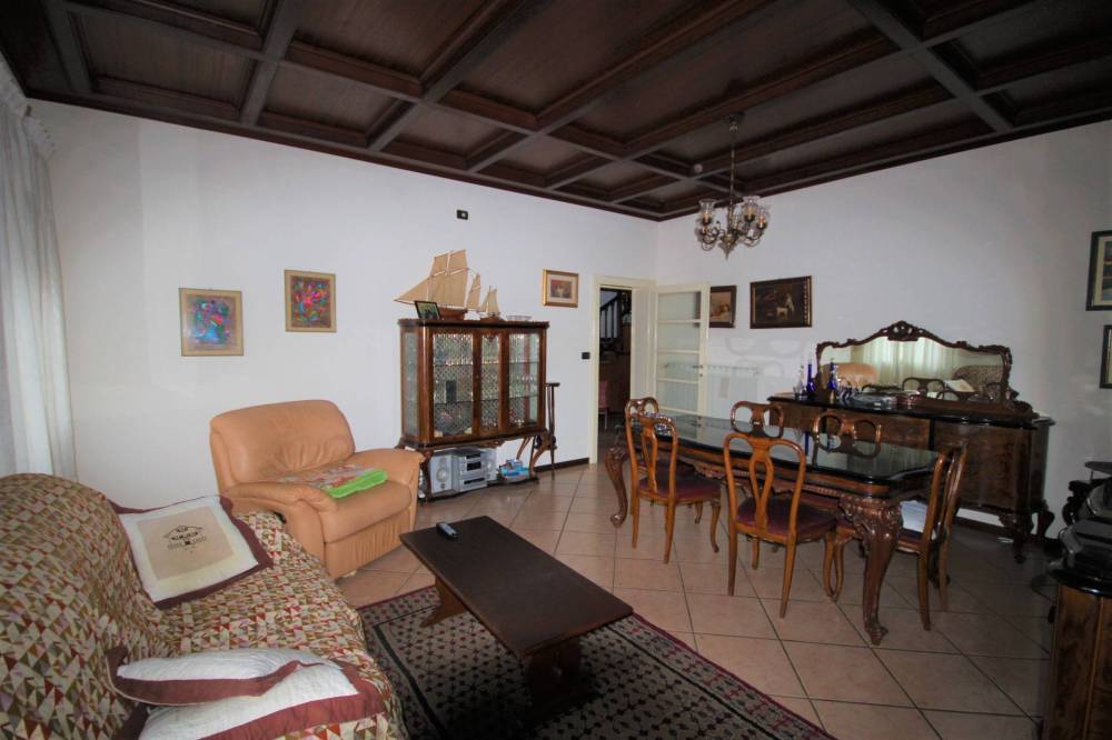 Al piano terra si trova un atrio di ingresso ed un disimpegno, un ampio soggiorno con soffitti in legno a cassonetti ed una cucina con veranda e vista sul giardinetto retrostante.