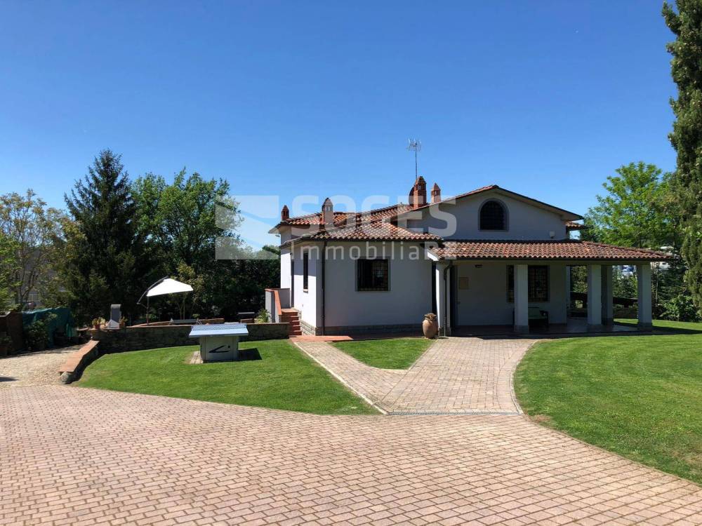 Terranuova Bracciolini, in comoda posizione a pochissimi minuti dal centro ma immersa nel verde della campagna Toscana, villa di recente costruzione completamente indipendente, circondata da ampio giardino di circa mq. 3000 con piscina in muratura di mq. 50 e resede recintato con cancello elettrico all' ingresso. Internamente l'immobile è composto da ampia loggia, soggiorno, cucina con camino, quattro camere e doppi servizi; Al piano seminterrato rustico con cucina, bagno, camino, cantina e lavanderia. Completano la proprietà quattro posti auto coperti.