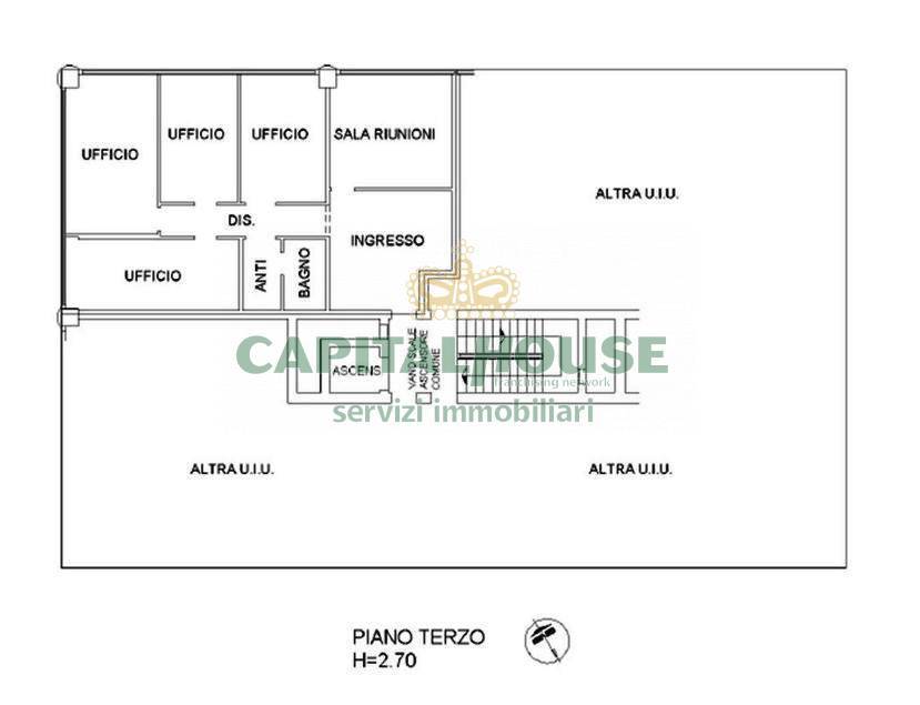 Gli uffici in vendita si trovano al terzo piano, servito da ascensore, sono attigui ma con due ingressi separati.
