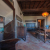 Dal portone principale si sviluppa tutto il piano terra, ci accoglie una cucina ampia e luminosa, esposta a sud, con un grande camino e lavello in pietra, sala da pranzo, studio / sala da thè, due camere ed un secondo accesso al giardino.