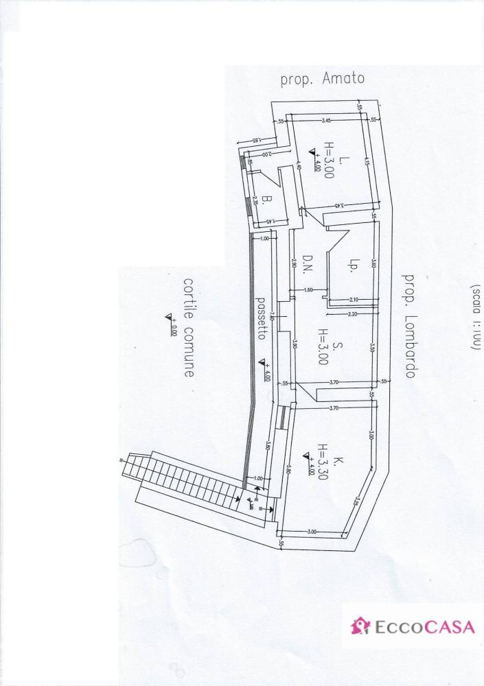 Ubicato al piano primo, l'appartamento è composto da cucina a vista, salone, due vani e bagno con suppenno soprastante.