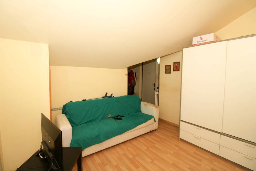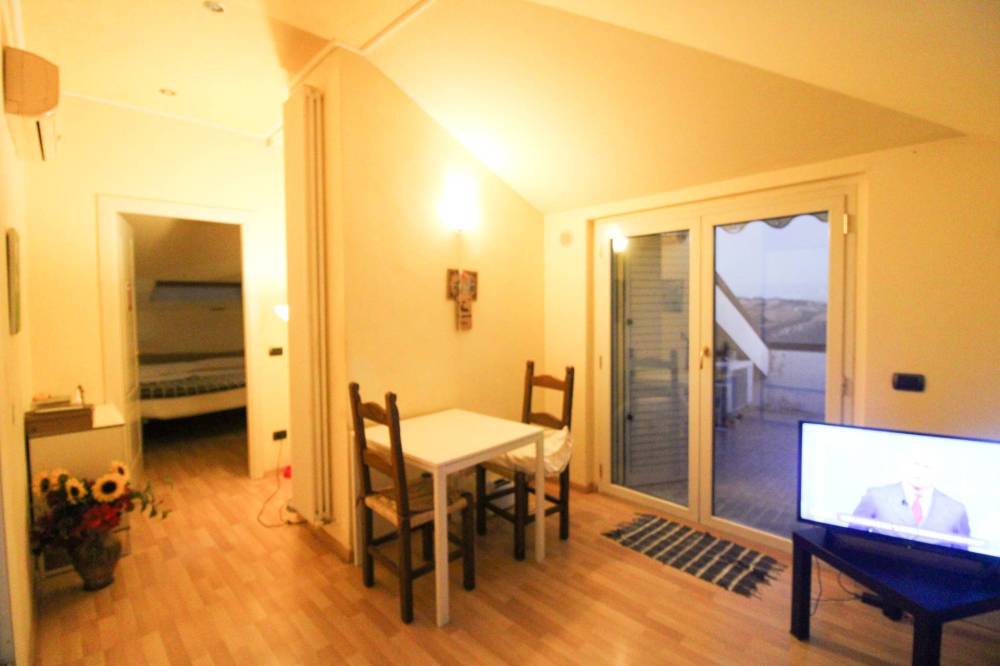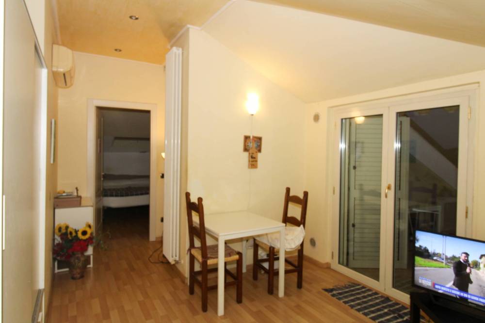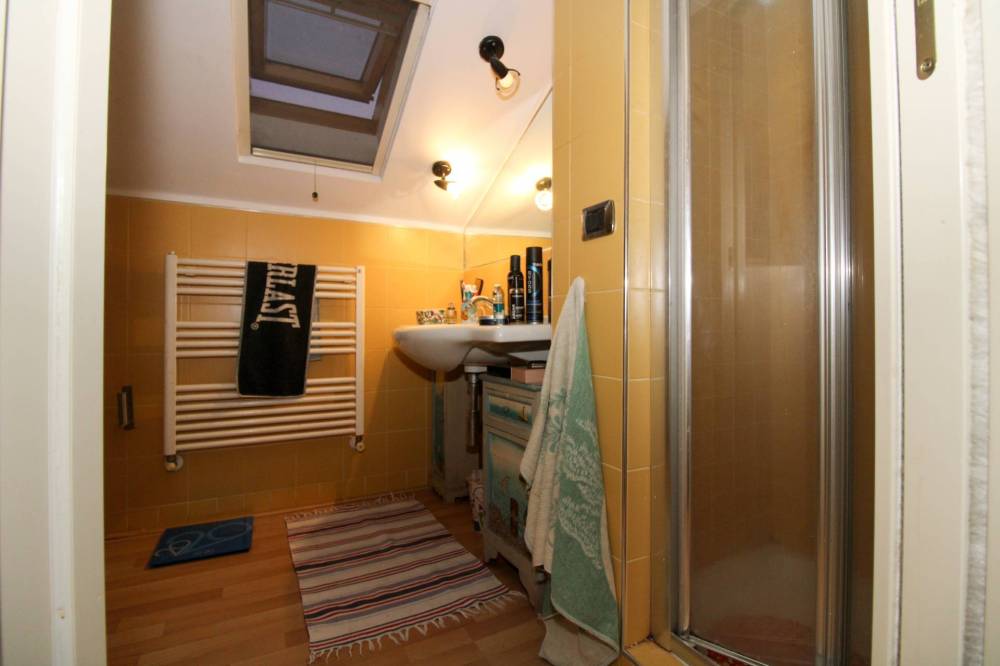 L'ingresso si apre su un luminoso soggiorno con uscita sul terrazzino esposto a sud - est e sulla cucina; la zona notte è composta da una camera da letto matrimoniale con bagno con doccia. Nella mansarda sono presenti alcuni rispostigli, realizzati per sfruttare al meglio gli spazi disponibili.