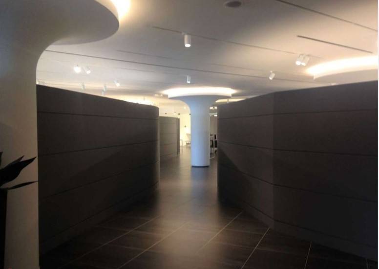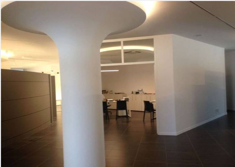 - ufficio posto al piano terra, suddiviso internamente in vari ambienti di forma irregolare atti ad ospitare show room, uffici, una piccola cucina, servizi igienici, reception, sala riunioni e corridoi-disimpegni, di 570 mq.