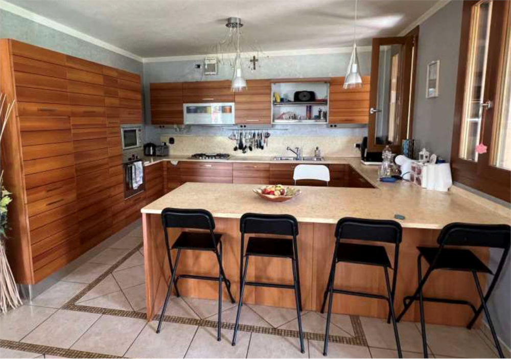 Villino con corte esclusiva situato a Villafranca Padovana (PD) in via Ronchi, composto da quattro vani principali ovvero soggiorno, cucina, due camere e quattro vani accessori quali due servizi igienici, disbrigo e sgombero.