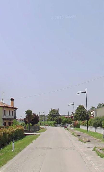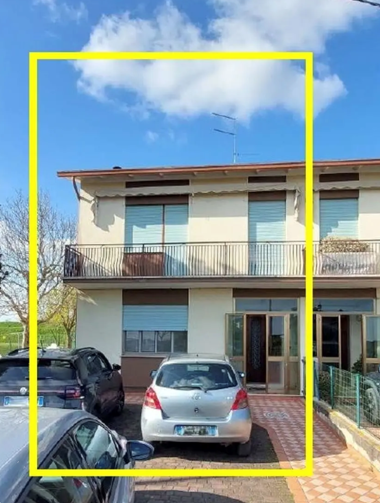 Abitazione indipendente su due livelli con annessa autorimessa e giardino situata a Torre di Mosto (VE), località Sant'Elena, composta da un ingresso, un soggiorno, sala da pranzo, una cucina, tre camere da letto, un guardaroba, due bagni, cantina, centrale termica e disimpegni.