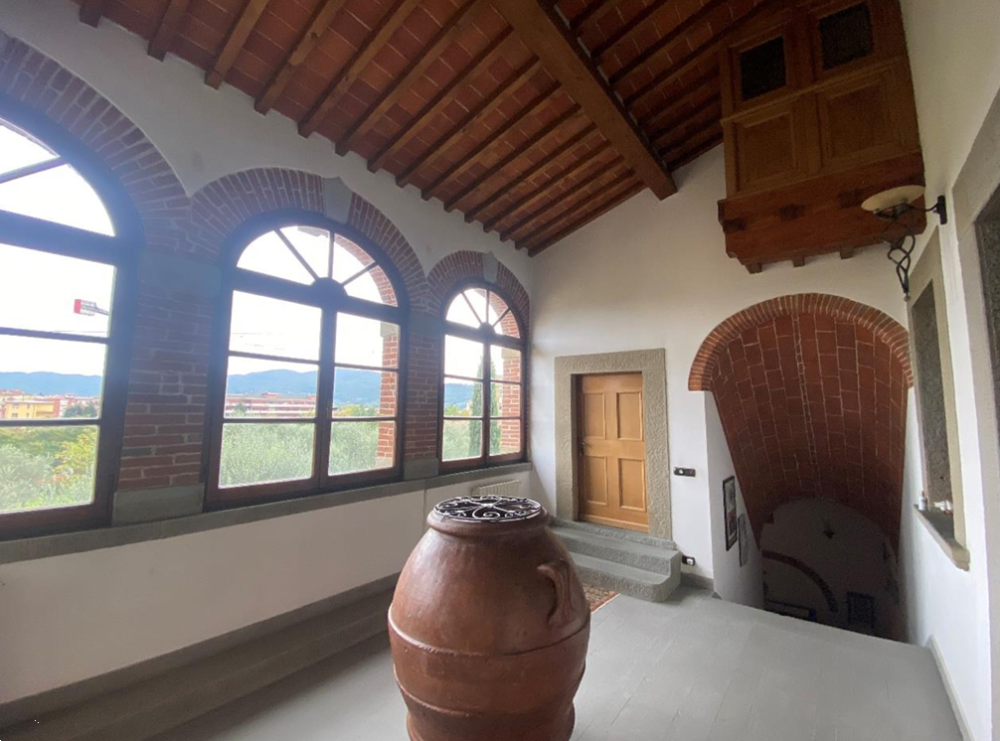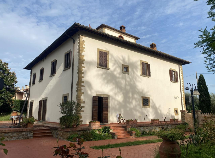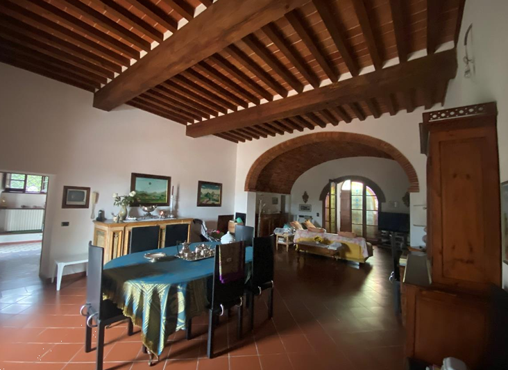 Villa singola situata ad Arezzo (AR), ha una superficie di 590,00 mq e si sviluppa su tre piani diversi con garage a parte. Al piano terra troviamo un ampio ingresso, una cucina con camino, un soggiorno, uno studio, una lavanderia e due bagni. Al primo piano troviamo un ampia loggia, un guardaroba, un ampio salone con camino di tipo signorile, 4 camere da letto e 2 bagni, infine al secondo piano una soffitta adibita a studio/relax.