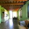 Vanta un uliveto, alberi da frutto e distese di campi coltivati. Il panorama circostante, fatto di colline con colture diverse tipiche del paesaggio rurale marchigiano e montagne in lontananza, può essere ammirato da tutti i lati della casa.