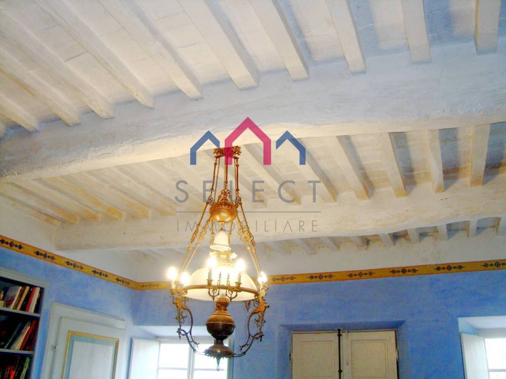 La villa è di pianta rettangolare, si sviluppa prevalentemente a est-ovest, arricchita da una bella terrazza panoramica rivolta ed est verso la valle sottostante. In ottime condizioni manutentive interne ed esterne, la villa si sviluppa su 3 livelli, sottotetto abitabile compreso, oltre alle cantine e ai locali accessori al piano seminterrato. Lingresso principale sul fronte ovest avviene da un importante portale, cui si accede da una scalinata esterna in pietra; al piano terra entriamo nellampio soggiorno con camino pregevolmente affrescato, cucina abitabile con camino, acquaio in pietra ed i vecchi fornelli in muratura sapientemente recuperati, disimpegno, bagno rivestito in marmo bianco di Carrara con doccia e due camere matrimoniali completamente affrescate, oltre alla grande terrazza esterna con gazebo molto piacevole per passare delle serate estive allaperto; da un disimpegno e dallampia scalinata in pietra con corrimano in ferro battuto arriviamo al piano primo composto da salone, quattro camere matrimoniali ed un bagno anchesso con doccia; al piano secondo sottotetto o soffitta troviamo un ampio vano corrispondente al salone sottostante, altri quattro vani ed un ripostiglio, se necessario tutti trasformabili in vani uso camera o altro. Al piano seminterrato, a cui si accede sia con accesso esterno che dalla cucina, abbiamo tre ampi vani uso cantine con bellissimo arco in pietra e mezzane, ed altro piccolo vano uso caciaia per la stagionatura di formaggi e salumi. La villa viene venduta non arredata, se interessati è possibile effettuare una trattativa separata. Superficie lorda Villa mq. 640,00. Superficie lorda Cantine mq. 115,00.