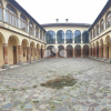 L’edificio, originariamente adibito a struttura conventuale e scolastica, si articola con forme e spazi di notevole valenza urbanistica ed architettonica;