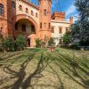 Spazi esterni e serviziIl castello è circondato da un vasto parco di circa 81.000 mq, originariamente destinato a vigneti, con un cortile recintato e alte mura che lo proteggono.