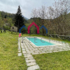 A corredo degli edifici abbiamo una bella piscina recintata della misura di 4.00 x 10.00 metri, zona per barbecue e terreno circostante per circa 4.200 mq. in parte a giardino ed in parte a bosco.