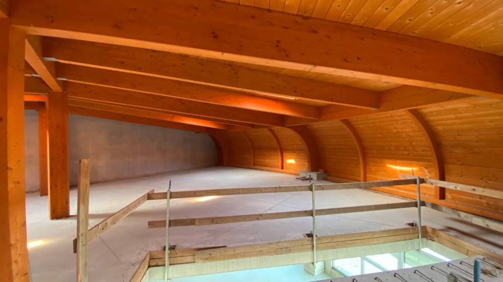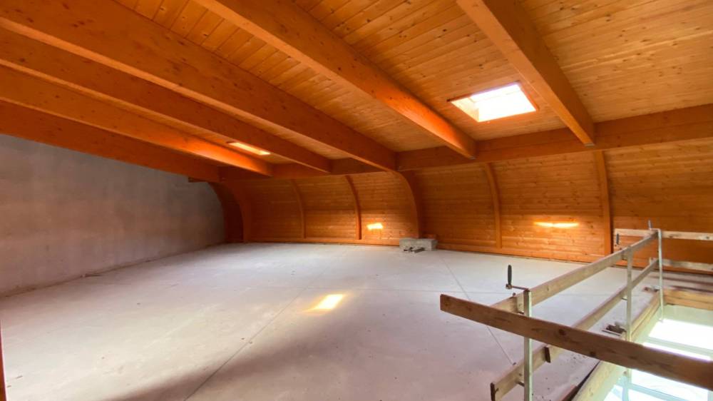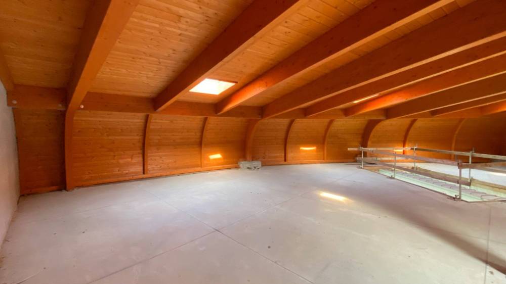 sub. 27 - L'immobile, da ultimare, di circa 336 metri quadrati totali su due piani, di cui circa 194 mq posti al piano primo, luminosissimo grazie alle ampie vetrate, e circa 142 mq al piano secondo, anch'esso con soffitti in legno e velux. 130.000
