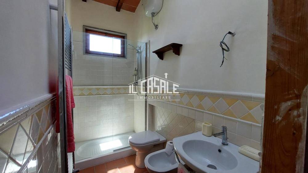 In panoramica posizione, in piccolo borgo lontano dalla vita frenetica proponiamo in vendita porzione di casa di campagna su più livelli e accessoriata. L'unità immobiliare è perfettamente utilizzabile come due abitazioni distinte. Un ambiente, finemente e completamente restaurato, è composto da zona giorno con lato cottura e dispensa finestrata, due camere di cui una con romantico camino e terrazza abitabile con vista sulla vallata e bagno finestrato. L'altro è suddiviso in zona giorno con focolare e attrezzato per lato cottura, 4 camere e bagno e si presenta solo internamente da ristrutturare. Completano la proprietà 3 ampi vani cantina (ex caciaia interrata) e circa 6000 mq di terreno seminativo con rimessaggio precario in legno. Classe energetica in elaborazione. Rif. 2-1858 €175.000,00 Il Casale Immobiliare 0558386386