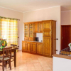 ampia cucina/sala da pranzo, una camera con due letti singoli, un bagno e una camera più grande con tre letti.