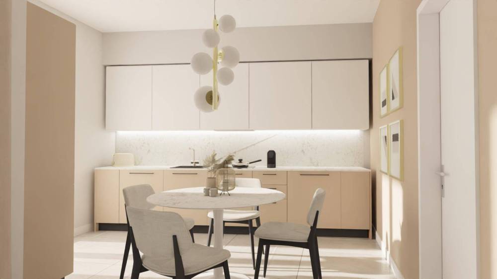 Composto da ingresso su soggiorno, cucina, disimpegno, 2 camere e 2 bagni.