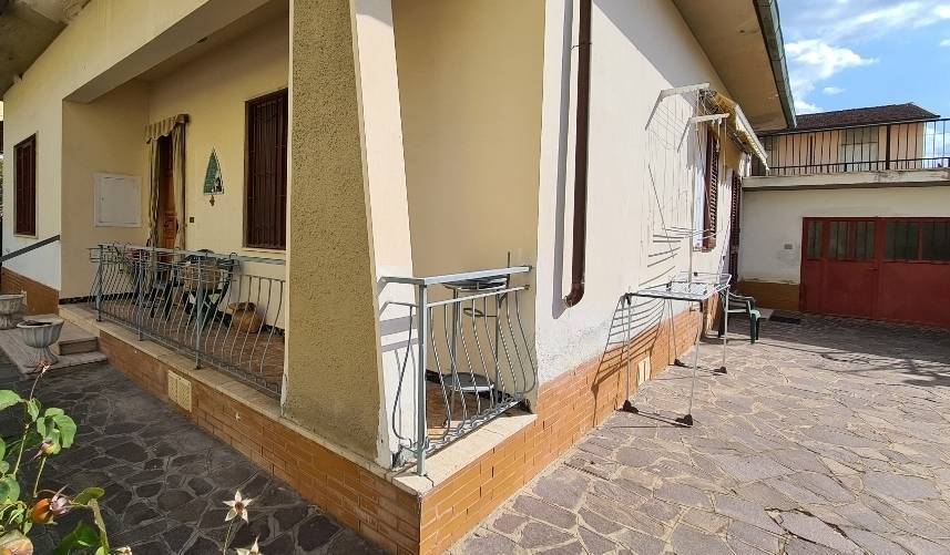 RIFCS60 San Miniato frazione, zona tranquilla e residenziale, viareggina su unico piano con soffitta praticabile. La casa si compone da ingresso, soggiorno, pranzo, cucinotto, rip., tre camere matrimoniali, bagno finestrato con doccia e vasca. Completa la proprieta' comodo garage con bagno, collegato all'abitazione, sopra al garage troviamo ampio terrazzo abitabile. Buone condizioni.