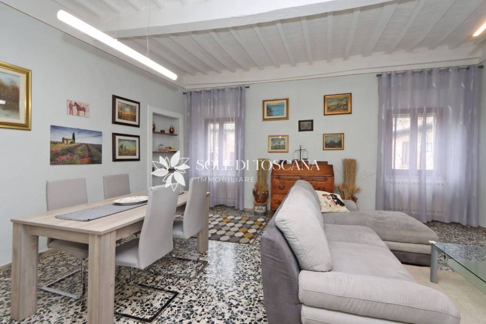 Descrizione Interna: L'appartamento, situato in un edificio storico del XIV secolo, è stato oggetto di una ristrutturazione alcuni fa mantenendo il fascino dell'epoca. Il soggiorno open space si apre sulla piazza principale, mentre la zona notte comprende tre camere da letto con vista panoramica e un bagno con doccia.