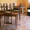 ingresso su salone con parete cottura,scala in muratura con rivestimento in cotto al piano terrazzo attrezzato; al secondo livello due camere, cabina armadio e bagno, corridoio con scala in legno di mogano che porta al locale sottotetto con servizio. Termoautonomo a gas metano oltre stufa a caminetto a pellets.