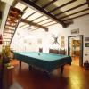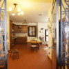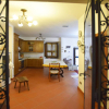 La parte principale si sviluppa su 2 livelli. Al piano terra troviamo salone di mq.80 circa con camino e biliardo, cucina di mq.40 circa (entrambi con pavimenti in cotto) e bagno, oltre a vano tecnico con caldaia a aria alimentata a gasolio (e possibilità di allaccio al metano), ma viene usata la stufa ventilata a legna. Al primo piano ci sono 3 camere matrimoniali e una singola, oltre al bagno.