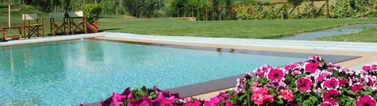 Primo piano: a mezzo di una bellissima scala in pietra, illuminata con luci a led, si accede alla sala colazioni o per cene di altissimo livello; la sala si affaccia sul giardino che è al solito livello dove insiste una grande piscina a raso, incastonata in una terrazza naturale. L'ampia piscina (9x18m) dell'agriturismo è depurata con un sistema innovativo che garantisce la purezza dell'acqua in quasi assenza di cloro. La piscina è aperta da maggio ad ottobre ed è illuminata anche di notte.