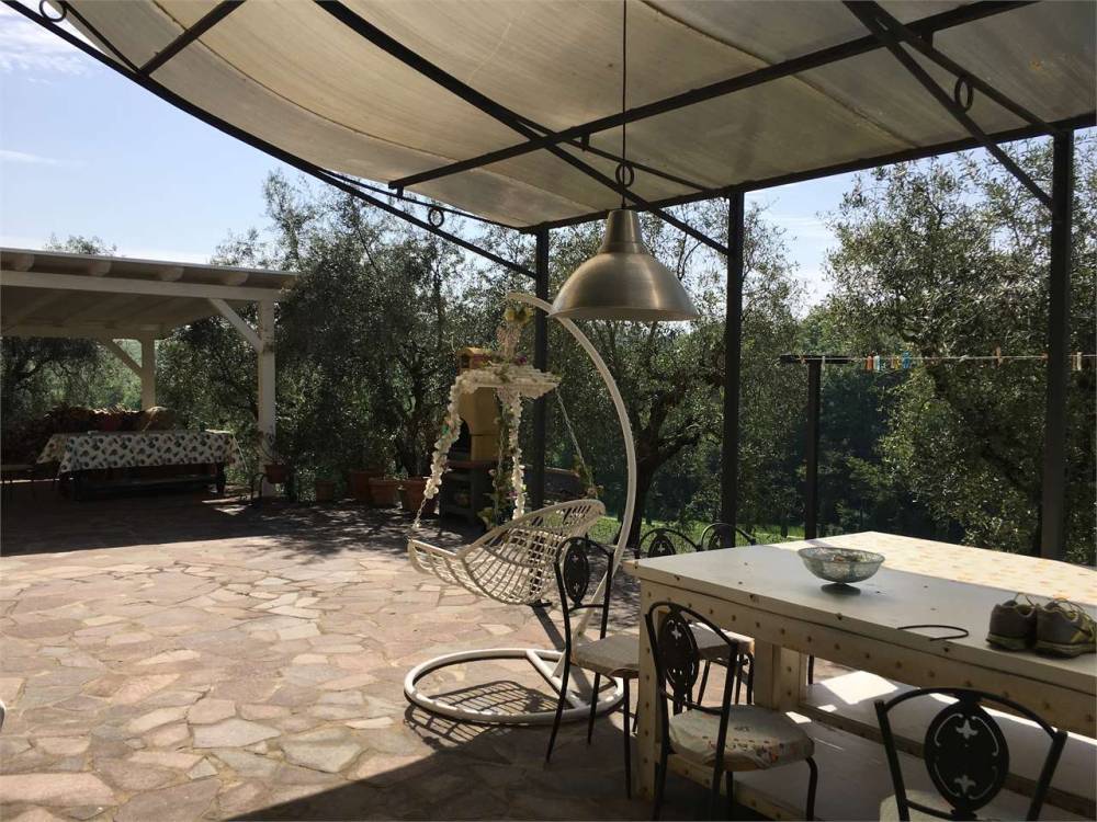 La proprietà si correda da giardino adiacente di circa tre ettari con vigneto ed uliveto, resede pavimentata con barbecue e posti auto.