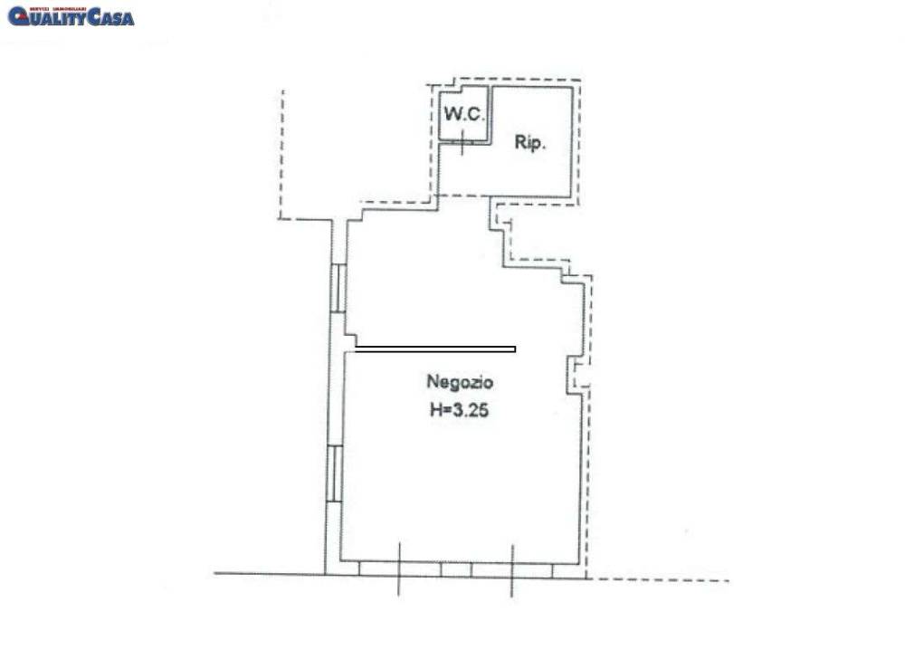 Composizione: Ingresso da due vetrine, su due vani con ripostiglio e servizio igienico.