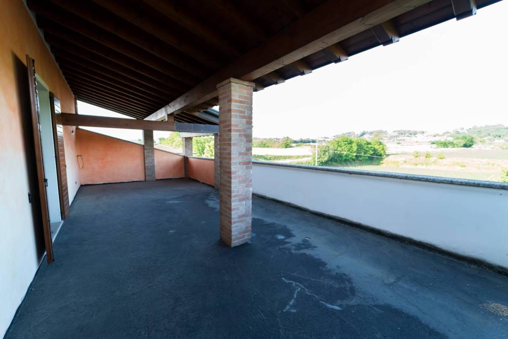 Una ricercata scala in cotto e pietra, che richiama la torre di un castello, conduce al piano primo dove si trova la seconda enorme camera matrimoniale da 28 MQ, con bagno finestrato da ultimare ed accesso diretto al terrazzo semicoperto di oltre 40 MQ.
