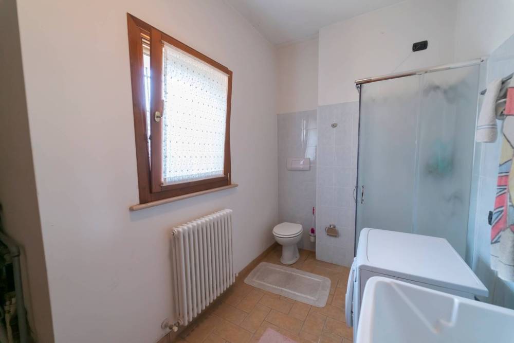 Dal disimpegno posto tra il soggiorno e la cucina, si accede all'atrio che conduce agli atri piani abitativi ed ospita il secondo bagno di servizio finestrato con doccia, oltre ad un utile ripostiglio.