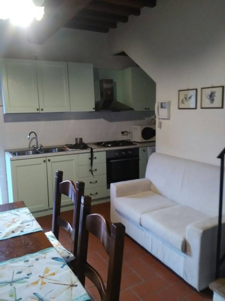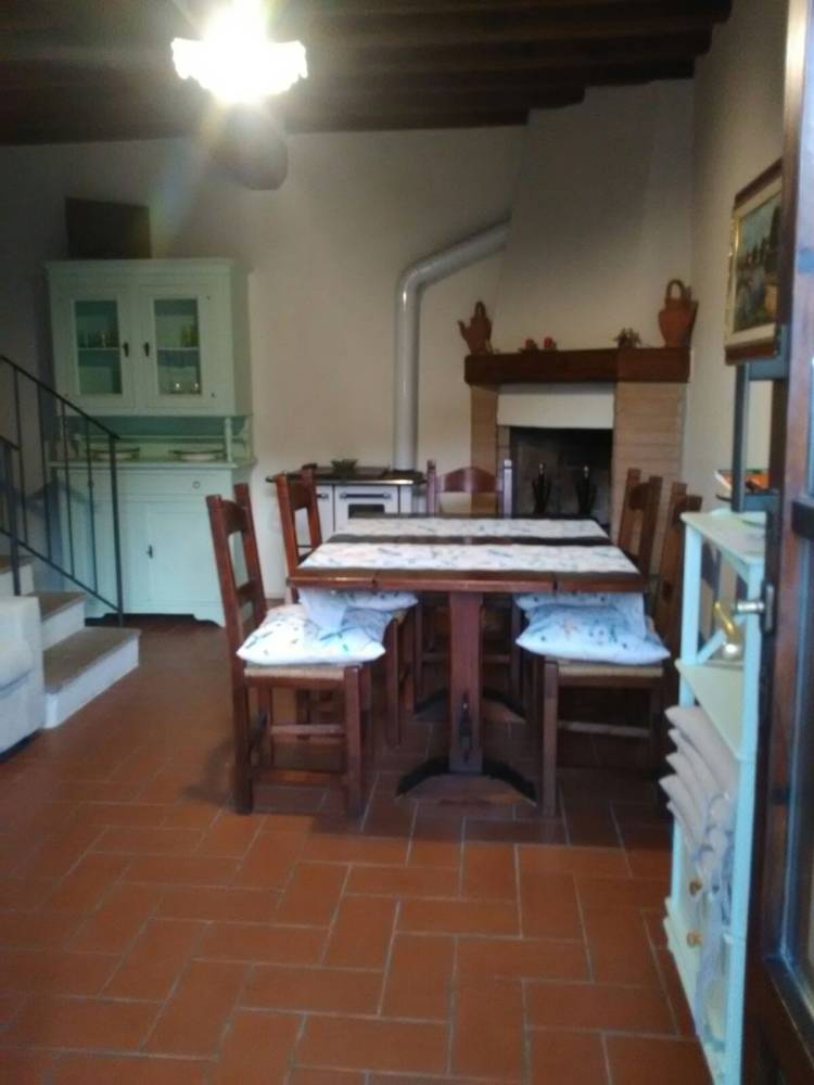 L'appartamento ha mantenuto lo stile toscano di origine ,con travi in noce ,pavimentazione in cotto e sassi a vista;