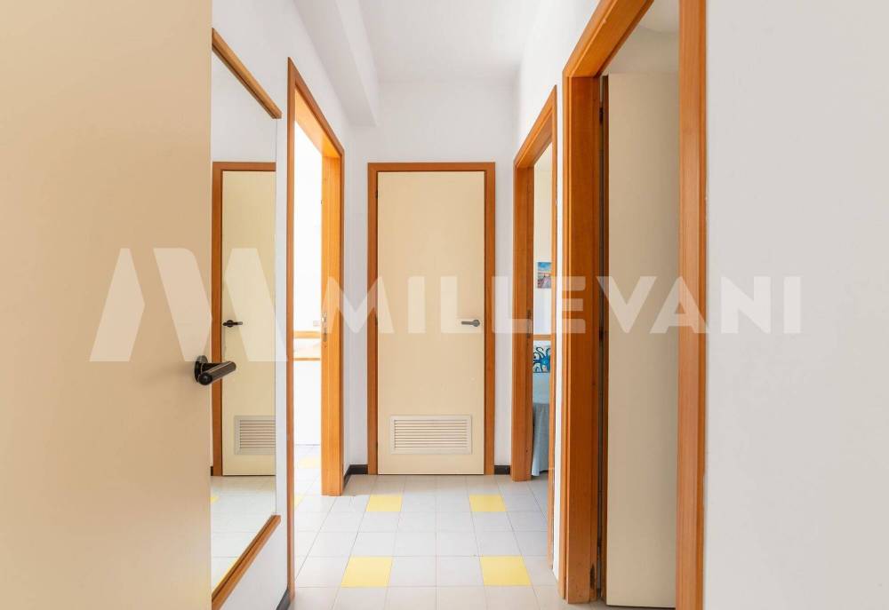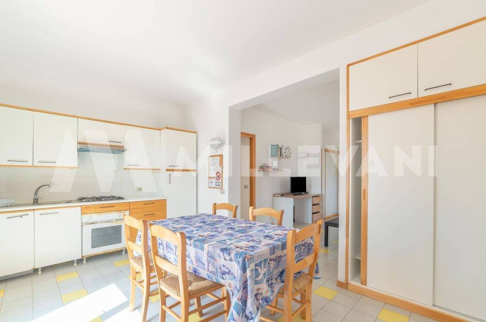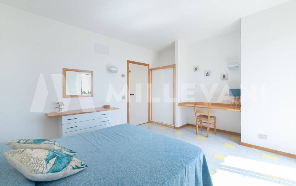 Composta da ingresso, cucina-soggiorno, due camere da letto, ripostiglio, bagno ed ampio balcone vista mare.