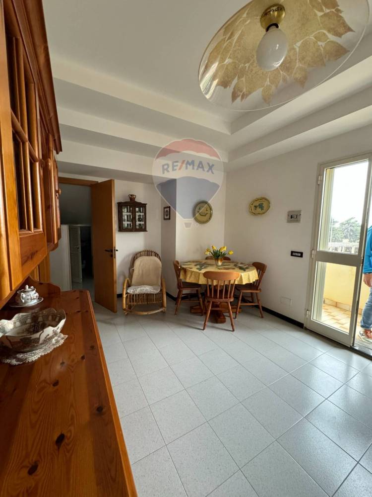 The comfortable living area with kitchenette and peninsula is represented by a well-distributed and bright space. The bedrooms, one double and two singles, are spacious and well-lit, thanks to the windows that overlook a perimeter balcony.