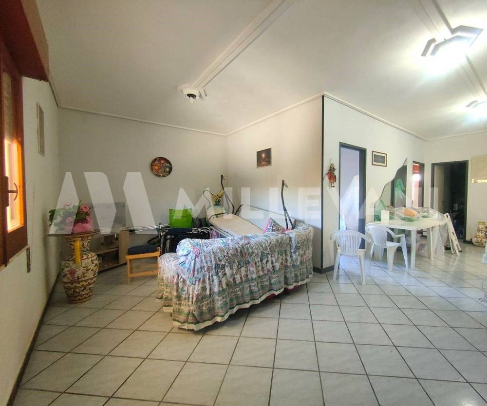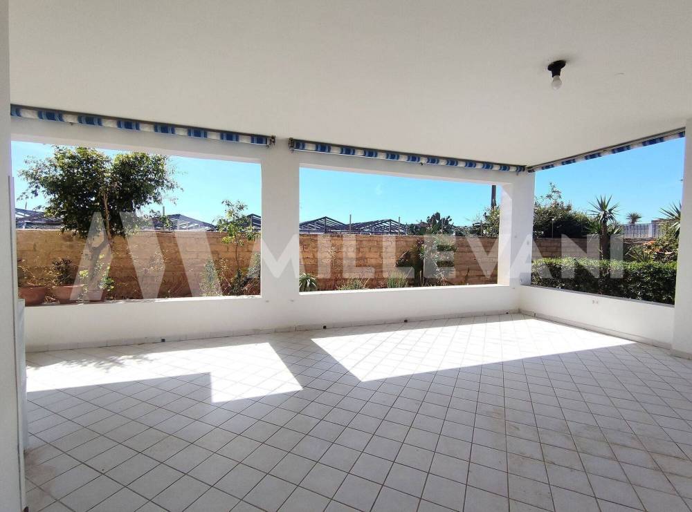 Limmobile, di circa 240 mq totali, disposto su due livelli, è composto al piano terra da un ampio salone, due camere da letto, cucina, ripostiglio, bagno, un doppio servizio/lavanderia e una comoda veranda coperta.